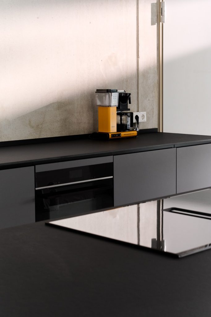 Die offene Küche ist im skandinavisch inspirierten Stil gehalten. Klare Linien und funktionale Einrichtung. Ausgestattet mit Induktionsherd, Backofen, Geschirrspüler und Kaffeevollautomat. Die Küche ist ideal für Film- und Fotoaufnahmen geeignet.